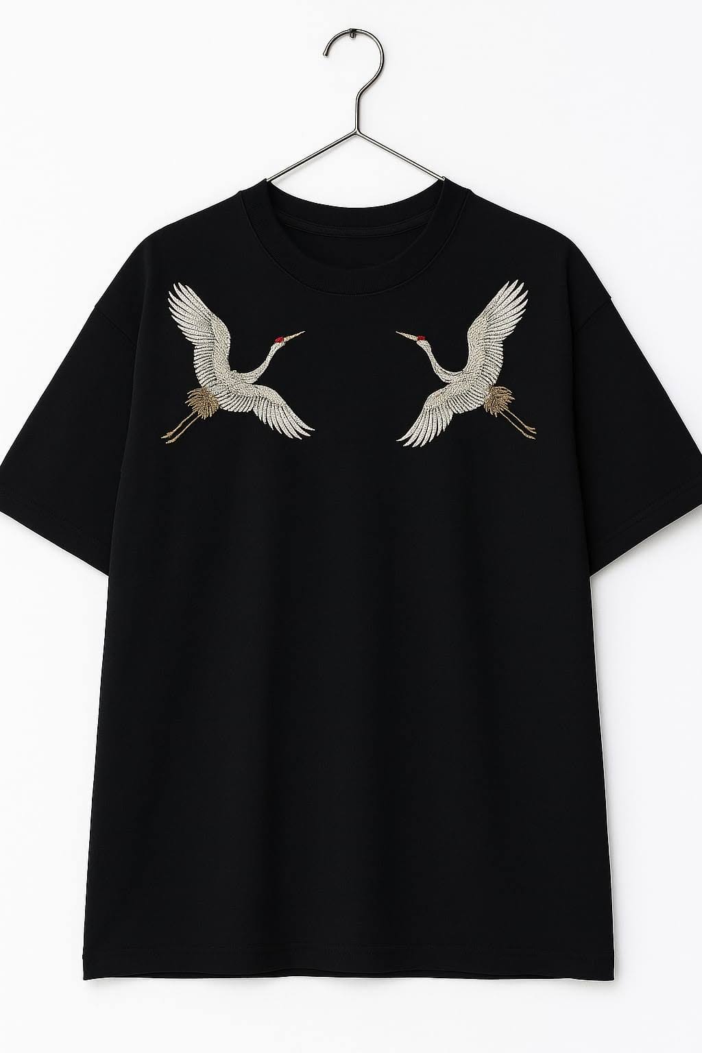 - Exquisite Crane Embroidery: As a standout bird embroidered tee for men, it features an iconic Japanese crane design stitched with high-precision, dense embroidery for a premium look.